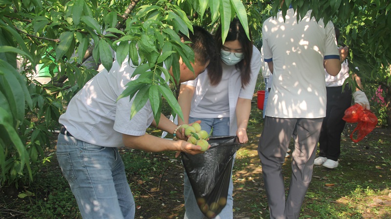 活動(dòng)當(dāng)天,天氣晴朗。參與采摘活動(dòng)的20余名員工來到果園,邊品嘗、邊挑選,園內(nèi)處處伴隨著歡聲笑語,洋溢著輕松與和諧的氛圍,平日里工作的疲勞都融化在這陽光明媚的夏日里,在汗水與收獲的滿足中,大家充分體驗(yàn)了一次采摘的樂趣。