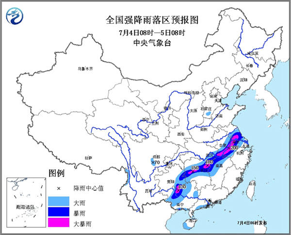 7月4日,我國南方地區(qū)持續(xù)強降水天氣短暫停歇,抗洪搶險工作迎來“黃金大半天”。但是搶險前景仍不容樂觀。據(jù)中央氣象臺消息,預計4日08時至5日08時,安徽中南部、江蘇中南部、湖北東南部、江西西北部、湖南中部和東北部、貴州東南部、廣西西北部和南部沿海等地有暴雨,其中,安徽和江蘇兩省沿江地區(qū)、湖南東北部及中部、廣西西北部等地的部分地區(qū)有大暴雨(100~200毫米);上述地區(qū)伴有短時強降水和雷暴大風等強對流天氣,最大小時雨強60~80毫米。南方大部地區(qū)仍然處于暴雨紅色預警中。