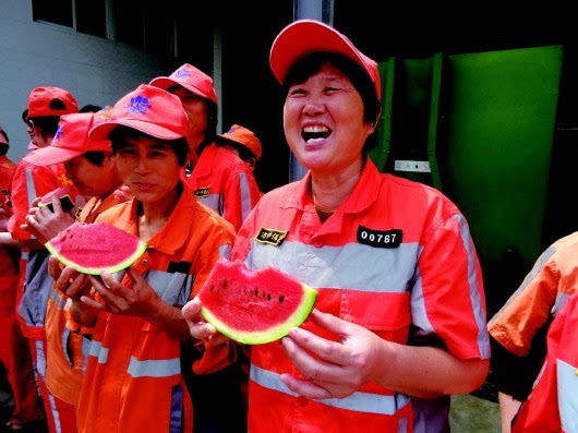 為預(yù)防和控制高溫中暑事件的發(fā)生,相關(guān)政府部門已采取措施,保證環(huán)衛(wèi)工人休息點(diǎn)全部開放,設(shè)置飲水點(diǎn),并提供必需、充足的防暑用品和藥品。社會(huì)上的許多熱心人士也為環(huán)衛(wèi)工人提供免費(fèi)的休息場(chǎng)所和飲用水、食物。