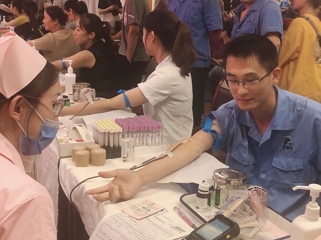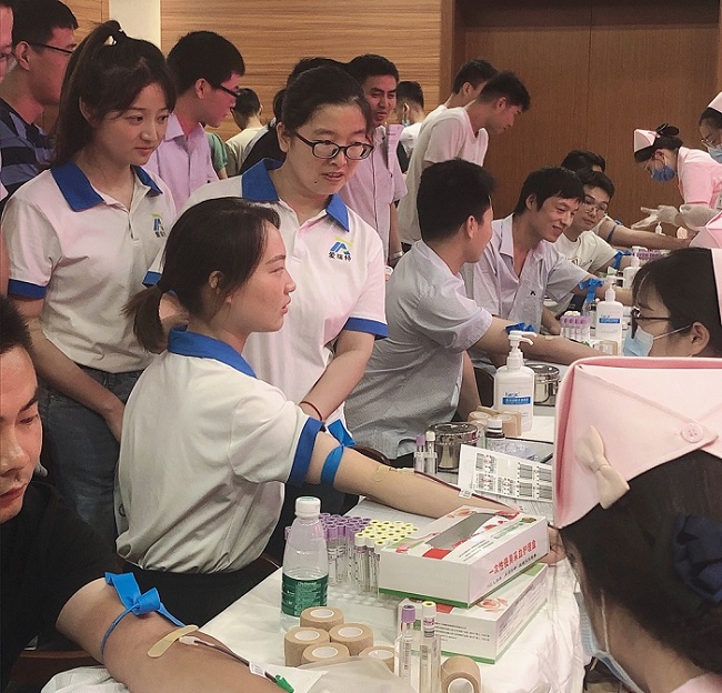 在獻(xiàn)血大廳里,前來獻(xiàn)血的愛瑞特員工們排隊等候著采血結(jié)果,等待獻(xiàn)血,大家有說有笑。他們每個人的臉上洋溢著笑容,用實際行動支持義務(wù)獻(xiàn)血,為群眾的生命健康奉獻(xiàn)自己的愛心。