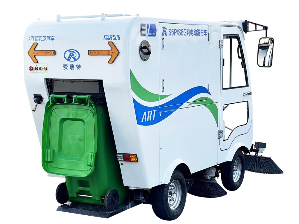 瑞清S6P/S6G電動(dòng)清掃車小巧靈活、通過性強(qiáng),主要用于非機(jī)動(dòng)車道、輔道、人行道、背街小巷等路面的清掃作業(yè),采用純吸方式,集清掃、噴淋、高壓沖洗、手持吸取為一體,可快速清掃落葉、石子、沙塵、白色垃圾等,配置240L標(biāo)準(zhǔn)垃圾桶。